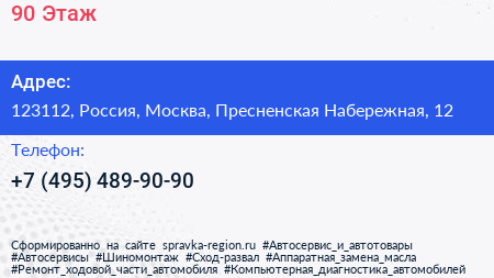 90 Этаж по адресу 123112, Россия, Москва, Пресненская Набережная, 12 в дальнейшем Организация, размещена в следующих категориях: