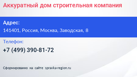 Аккуратный дом, строительная компания по адресу 141401, Россия, Москва, Заводская, 8 в дальнейшем Организация, размещена в следующих категориях: