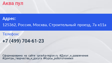 Аква пул по адресу 125362, Россия, Москва, Строительный проезд, 7а к11а в дальнейшем Организация, размещена в следующих категориях: