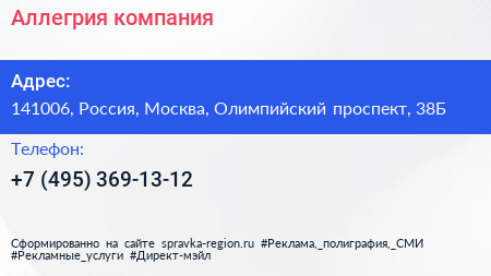 Аллегрия, компания по адресу 141006, Россия, Москва, Олимпийский проспект, 38Б в дальнейшем Организация, размещена в следующих категориях: