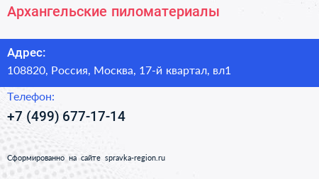 Архангельские пиломатериалы по адресу 108820, Россия, Москва, 17-й квартал, вл1 в дальнейшем Организация, размещена в следующих категориях: