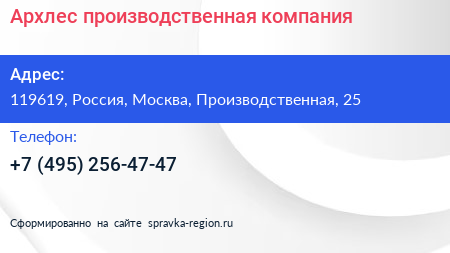 Архлес, производственная компания по адресу 119619, Россия, Москва, Производственная, 25 в дальнейшем Организация, размещена в следующих категориях: