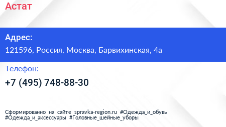 Астат по адресу 121596, Россия, Москва, Барвихинская, 4а в дальнейшем Организация, размещена в следующих категориях: