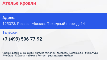 Ателье кровли по адресу 125373, Россия, Москва, Походный проезд, 14 в дальнейшем Организация, размещена в следующих категориях: