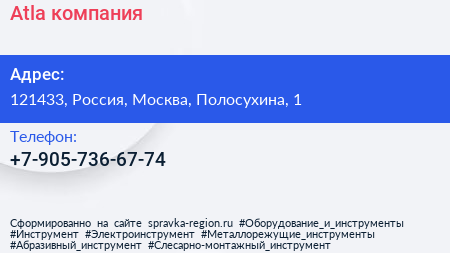 Atla, компания по адресу 121433, Россия, Москва, Полосухина, 1 в дальнейшем Организация, размещена в следующих категориях: