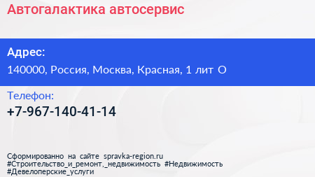 Автогалактика, автосервис по адресу 140000, Россия, Москва, Красная, 1 лит О в дальнейшем Организация, размещена в следующих категориях: