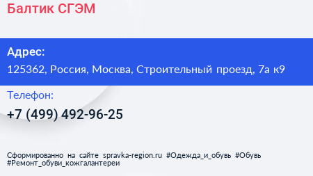 Балтик-СГЭМ по адресу 125362, Россия, Москва, Строительный проезд, 7а к9 в дальнейшем Организация, размещена в следующих категориях: