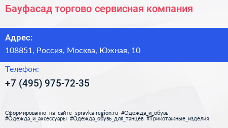 Бауфасад, торгово-сервисная компания по адресу 108851, Россия, Москва, Южная, 10 в дальнейшем Организация, размещена в следующих категориях: