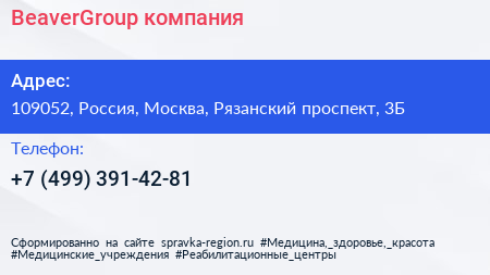 BeaverGroup, компания по адресу 109052, Россия, Москва, Рязанский проспект, 3Б в дальнейшем Организация, размещена в следующих категориях: