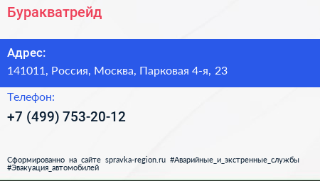 Буракватрейд по адресу 141011, Россия, Москва, Парковая 4-я, 23 в дальнейшем Организация, размещена в следующих категориях: