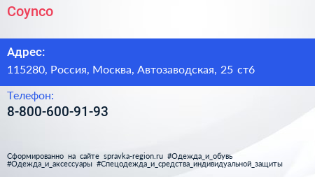 Coynco по адресу 115280, Россия, Москва, Автозаводская, 25 ст6 в дальнейшем Организация, размещена в следующих категориях: