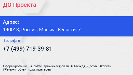 ДО Проекта по адресу 140013, Россия, Москва, Юности, 7 в дальнейшем Организация, размещена в следующих категориях: