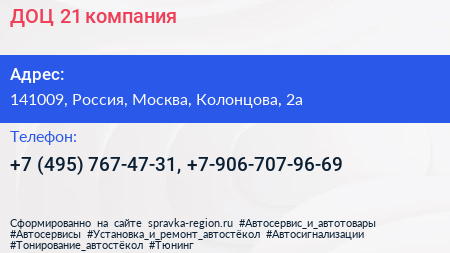 ДОЦ 21, компания по адресу 141009, Россия, Москва, Колонцова, 2а в дальнейшем Организация, размещена в следующих категориях: