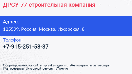 ДРСУ-77, строительная компания по адресу 125599, Россия, Москва, Ижорская, 8 в дальнейшем Организация, размещена в следующих категориях: