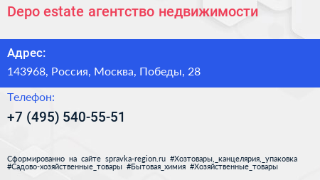 Depo estate, агентство недвижимости по адресу 143968, Россия, Москва, Победы, 28 в дальнейшем Организация, размещена в следующих категориях: