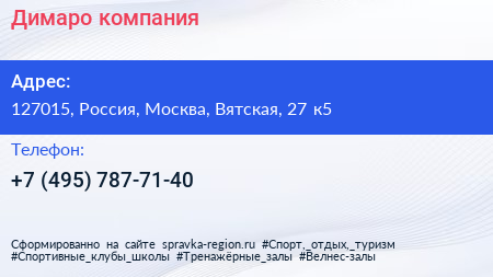 Димаро, компания по адресу 127015, Россия, Москва, Вятская, 27 к5 в дальнейшем Организация, размещена в следующих категориях: