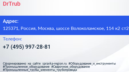 DrTrub по адресу 125371, Россия, Москва, шоссе Волоколамское, 114 к2 ст2 в дальнейшем Организация, размещена в следующих категориях: