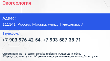 Экогеология по адресу 111141, Россия, Москва, улица Плеханова, 7 в дальнейшем Организация, размещена в следующих категориях: