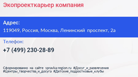 Экопроекткарьер, компания по адресу 119049, Россия, Москва, Ленинский проспект, 2а в дальнейшем Организация, размещена в следующих категориях: