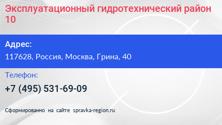 Эксплуатационный гидротехнический район №10 по адресу 117628, Россия, Москва, Грина, 40 в дальнейшем Организация, размещена в следующих категориях: