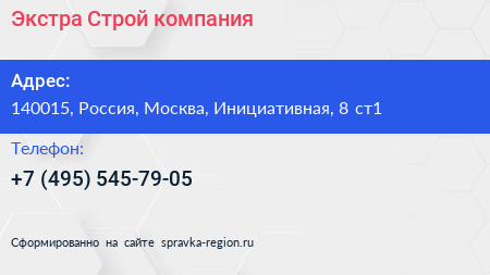 Экстра-Строй, компания по адресу 140015, Россия, Москва, Инициативная, 8 ст1 в дальнейшем Организация, размещена в следующих категориях: