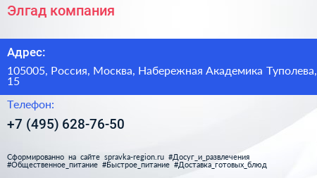 Элгад, компания по адресу 105005, Россия, Москва, Набережная Академика Туполева, 15 в дальнейшем Организация, размещена в следующих категориях: