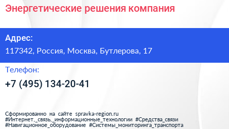 Энергетические решения, компания по адресу 117342, Россия, Москва, Бутлерова, 17 в дальнейшем Организация, размещена в следующих категориях: