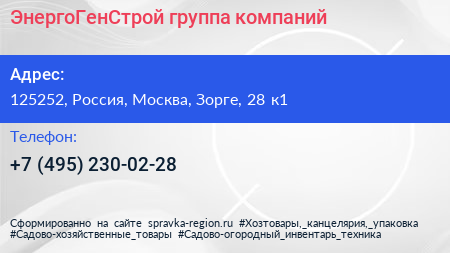 ЭнергоГенСтрой, группа компаний по адресу 125252, Россия, Москва, Зорге, 28 к1 в дальнейшем Организация, размещена в следующих категориях: