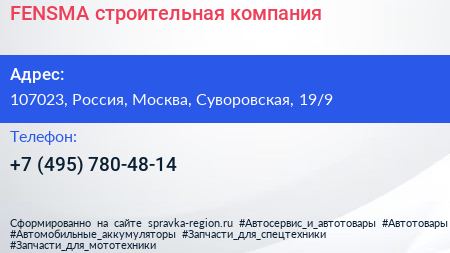 FENSMA, строительная компания по адресу 107023, Россия, Москва, Суворовская, 19/9 в дальнейшем Организация, размещена в следующих категориях: