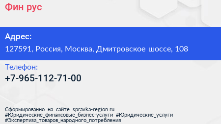 Фин-рус по адресу 127591, Россия, Москва, Дмитровское шоссе, 108 в дальнейшем Организация, размещена в следующих категориях: