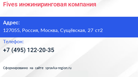 Fives, инжиниринговая компания по адресу 127055, Россия, Москва, Сущёвская, 27 ст2 в дальнейшем Организация, размещена в следующих категориях: