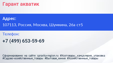 Гарант акватик по адресу 107113, Россия, Москва, Шумкина, 26а ст5 в дальнейшем Организация, размещена в следующих категориях: