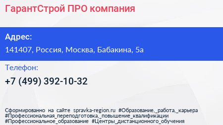 ГарантСтрой-ПРО, компания по адресу 141407, Россия, Москва, Бабакина, 5а в дальнейшем Организация, размещена в следующих категориях: