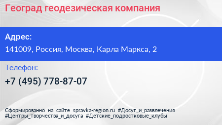 Геоград, геодезическая компания по адресу 141009, Россия, Москва, Карла Маркса, 2 в дальнейшем Организация, размещена в следующих категориях: