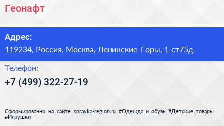 Геонафт по адресу 119234, Россия, Москва, Ленинские Горы, 1 ст75д в дальнейшем Организация, размещена в следующих категориях: