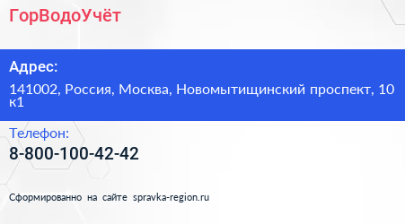 ГорВодоУчёт по адресу 141002, Россия, Москва, Новомытищинский проспект, 10 к1 в дальнейшем Организация, размещена в следующих категориях:
