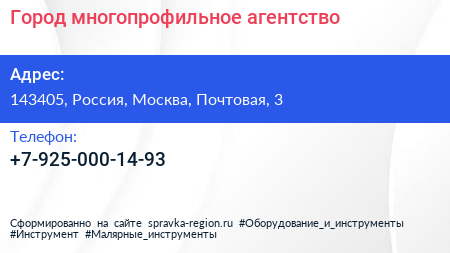 Город, многопрофильное агентство по адресу 143405, Россия, Москва, Почтовая, 3 в дальнейшем Организация, размещена в следующих категориях: