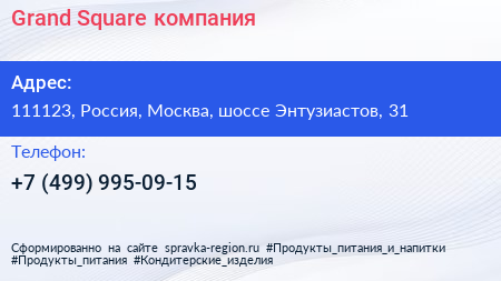 Grand Square, компания по адресу 111123, Россия, Москва, шоссе Энтузиастов, 31 в дальнейшем Организация, размещена в следующих категориях:
