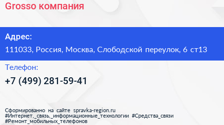 Grosso, компания по адресу 111033, Россия, Москва, Слободской переулок, 6 ст13 в дальнейшем Организация, размещена в следующих категориях: