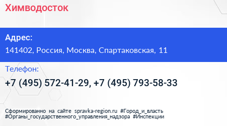 Химводосток по адресу 141402, Россия, Москва, Спартаковская, 11 в дальнейшем Организация, размещена в следующих категориях: