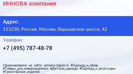ИННОВА, компания по адресу 115230, Россия, Москва, Варшавское шоссе, 42 в дальнейшем Организация, размещена в следующих категориях: