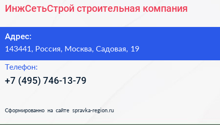 ИнжСетьСтрой, строительная компания по адресу 143441, Россия, Москва, Садовая, 19 в дальнейшем Организация, размещена в следующих категориях: