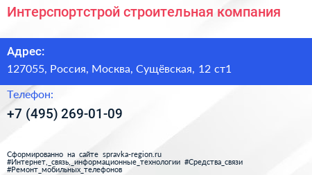 Интерспортстрой, строительная компания по адресу 127055, Россия, Москва, Сущёвская, 12 ст1 в дальнейшем Организация, размещена в следующих категориях: