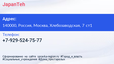 JapanTeh по адресу 140000, Россия, Москва, Хлебозаводская, 7 ст1 в дальнейшем Организация, размещена в следующих категориях: