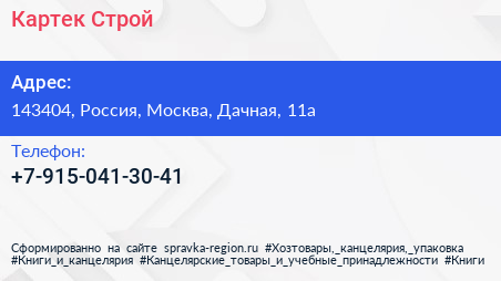 Картек-Строй по адресу 143404, Россия, Москва, Дачная, 11а в дальнейшем Организация, размещена в следующих категориях: