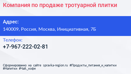 Компания по продаже тротуарной плитки по адресу 140009, Россия, Москва, Инициативная, 7Б в дальнейшем Организация, размещена в следующих категориях: