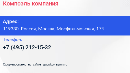 Компоэль, компания по адресу 119330, Россия, Москва, Мосфильмовская, 17Б в дальнейшем Организация, размещена в следующих категориях:
