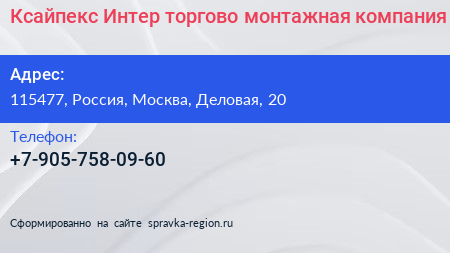 Ксайпекс Интер, торгово-монтажная компания по адресу 115477, Россия, Москва, Деловая, 20 в дальнейшем Организация, размещена в следующих категориях: