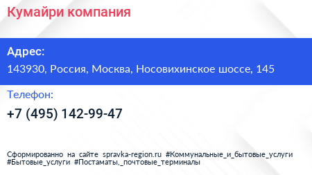 Кумайри, компания по адресу 143930, Россия, Москва, Носовихинское шоссе, 145 в дальнейшем Организация, размещена в следующих категориях: