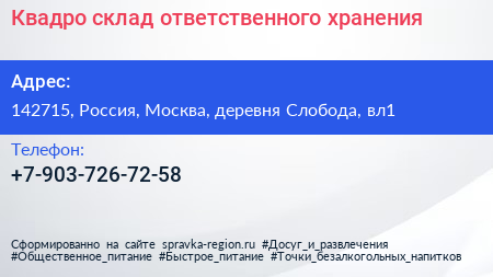 Квадро, склад ответственного хранения по адресу 142715, Россия, Москва, деревня Слобода, вл1 в дальнейшем Организация, размещена в следующих категориях: